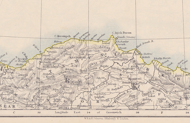 Фирма W. & A.K. Johnston была одним из крупнейших издательств XIX века. Соучредители, братья Уильям (1802-1888) и Александр Кейт (1804-1871) Джонстоны, начинали как ученики шотландского изготовителя глобусов и издателя Джеймса Кирквуда в его эдинбургской мастерской. Обучившись там, братья открыли собственное дело. Они завоевали репутацию авторов высококачественных географических и топографических карт, внеся значительный вклад в развитие картографии своего времени. Их работы остаются ценным источником для исторической географии.
