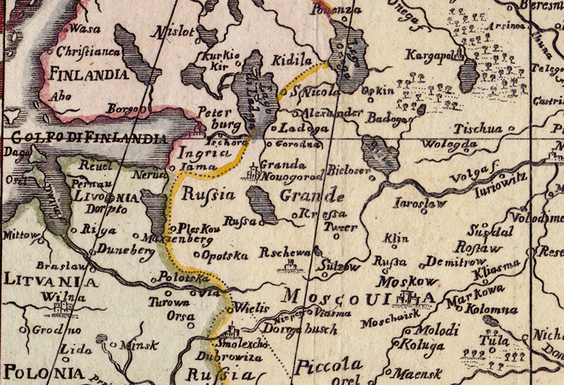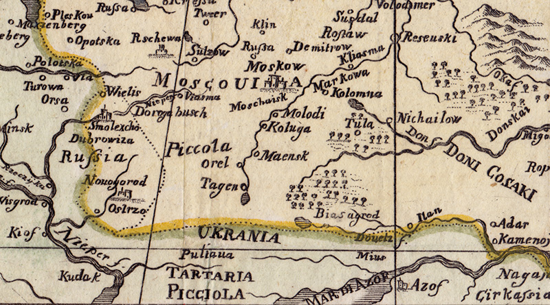 Интересно, что на карте обозначены Молоди под Москвой. Вероятно, ставшие известными после битвы при Молодях, которая круто поменяла военный статус России. На других картах того же временного периода, и даже очень похожих, этого селения нет.