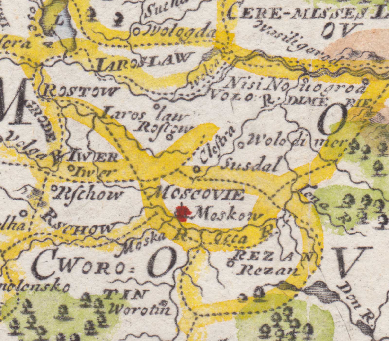 Казанское ханство, входившее в Московию, обозначено как Royavme de Kazan (Казанское Царство), а Астраханское ханство – Royaume d Astrasan (Астраханское царство).