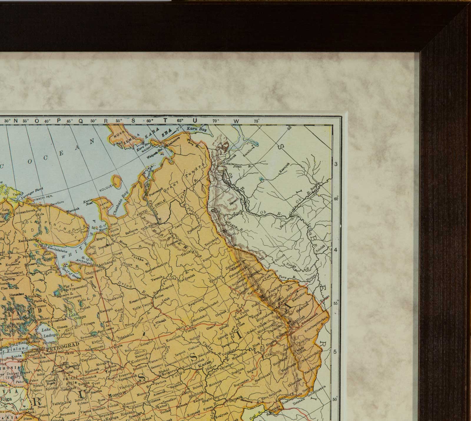 Оформлена в резервационное паспарту. Паспарту для этой карты изготовлено из картона высочайшего качества, имеющего специальное назначение - консервационное. Картон паспарту состоит из двух слоев, проложенных хлопковыми волокнами, лицевая сторона - бескислотная.