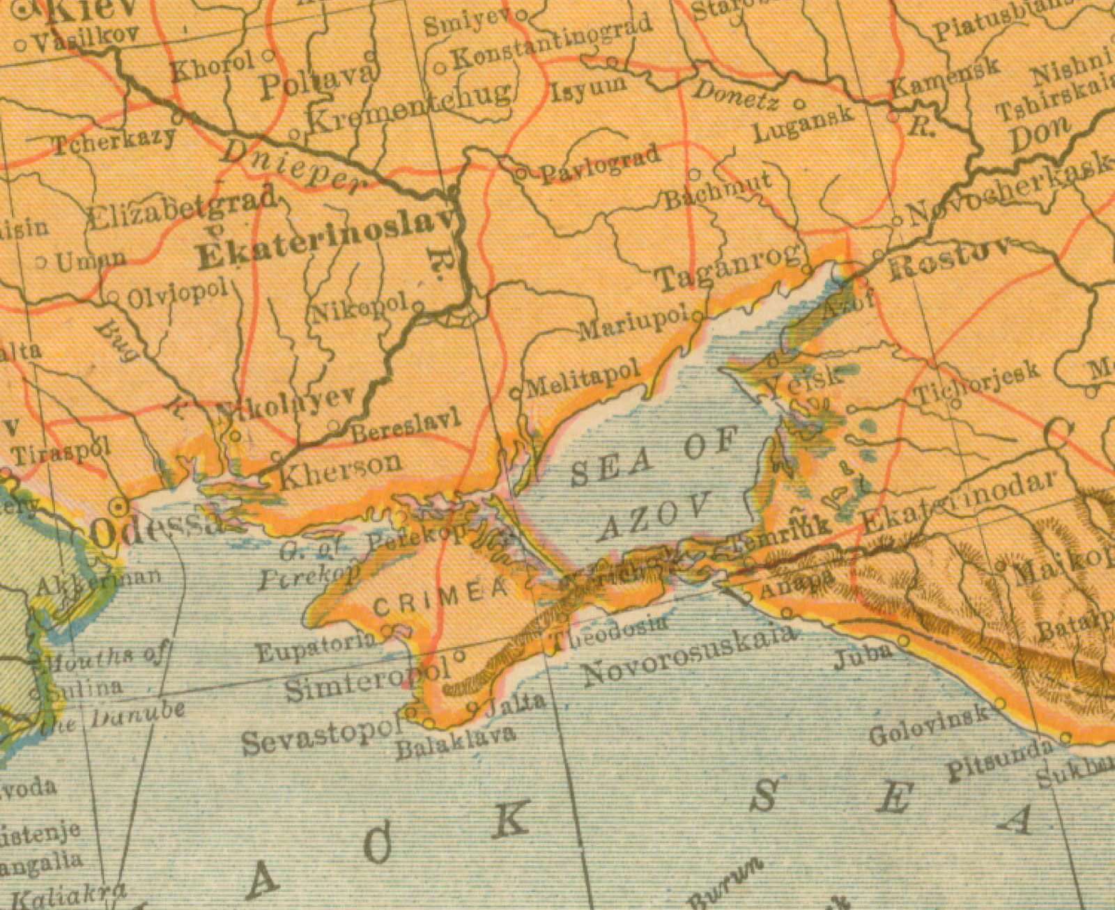 Карта Восточной Европы, включая европейскую часть России, изданная в 1921 году в США в «Атласе и Географическом справочнике городов мира».