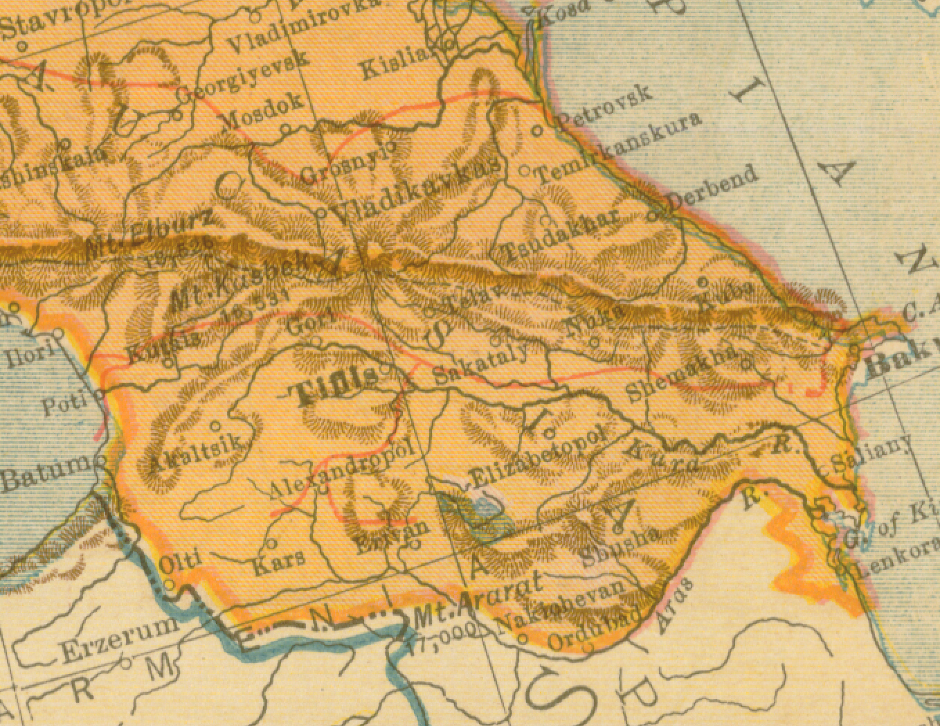 А вот в Закавказье границы еще прежние: гора Арарат и город Карс - территория Армении, вернее (согласно карте) – России.