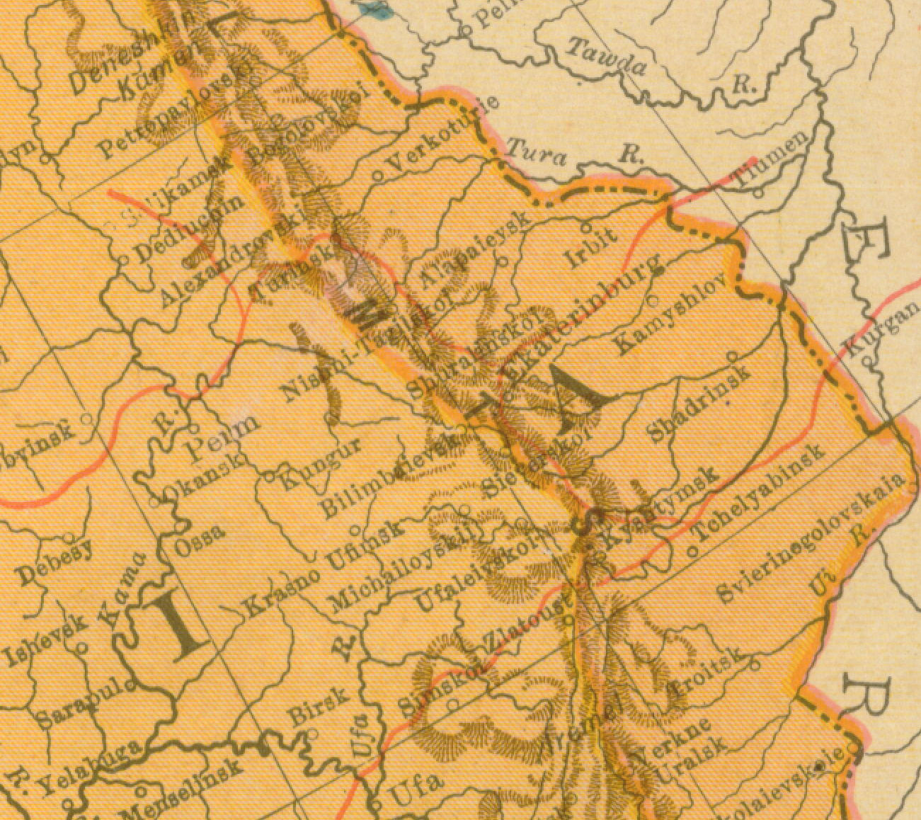 Карта очень подробная. В неё попали города с населением иногда даже менее 10 тысяч человек. Если степень значимости городов соотносится с размером шрифта, то не удивительно, что даже поселения, не являвшиеся на момент выхода карты городами, но в которых располагались промышленные предприятия, социально-культурные объекты, заводы, присутствуют на карте и обозначены наравне с городами. Это особенно хорошо видно по городкам и поселениям на Урале: Кыштым, Алапаевск, Магнитогорск (указан как станица Магнитная), Верхнеуральск, Шадринск, Камышлов, Ирбит, Верхотурье (в котором в начале ХХ века насчитывалось вообще 4 тыс. человек) и др. Это города с 300-летней и более историей, и все они в разное время имели большое значение для государства и региона. Каждый был значим – кто оборонительной крепостью, кто заводами, кто горными разработками.