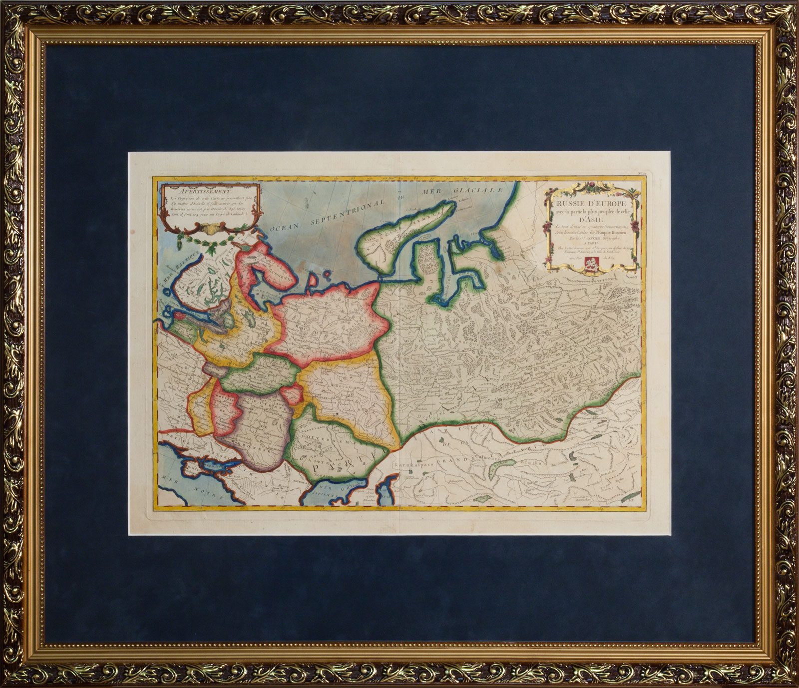 Для оформления паспарту карты использован музейный бархатный картон, применяющийся только для исключительно раритетных бумажных документов, выставляемых в музеях.