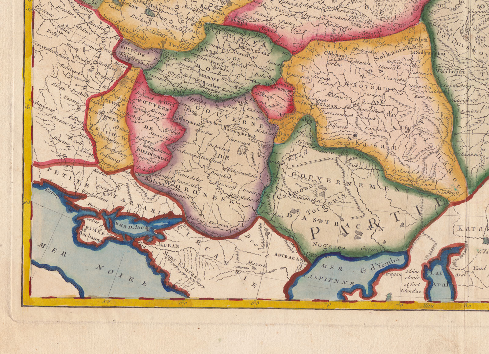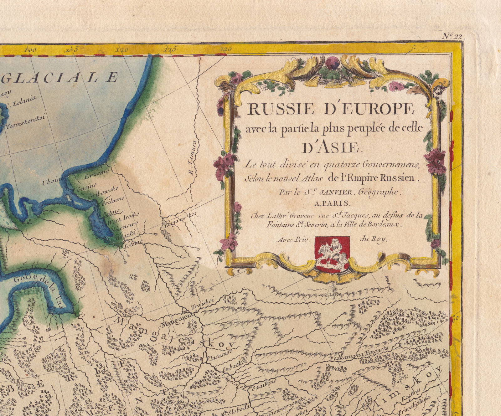 Оригинальное название: Russie d’Europe avec la partie la plus peuplée de celle d’Asie. {page:WordSection1;}Le tout divisé en quatorze Gouvernemens, Selon le nouvel, Atlas de L'empire Russien.