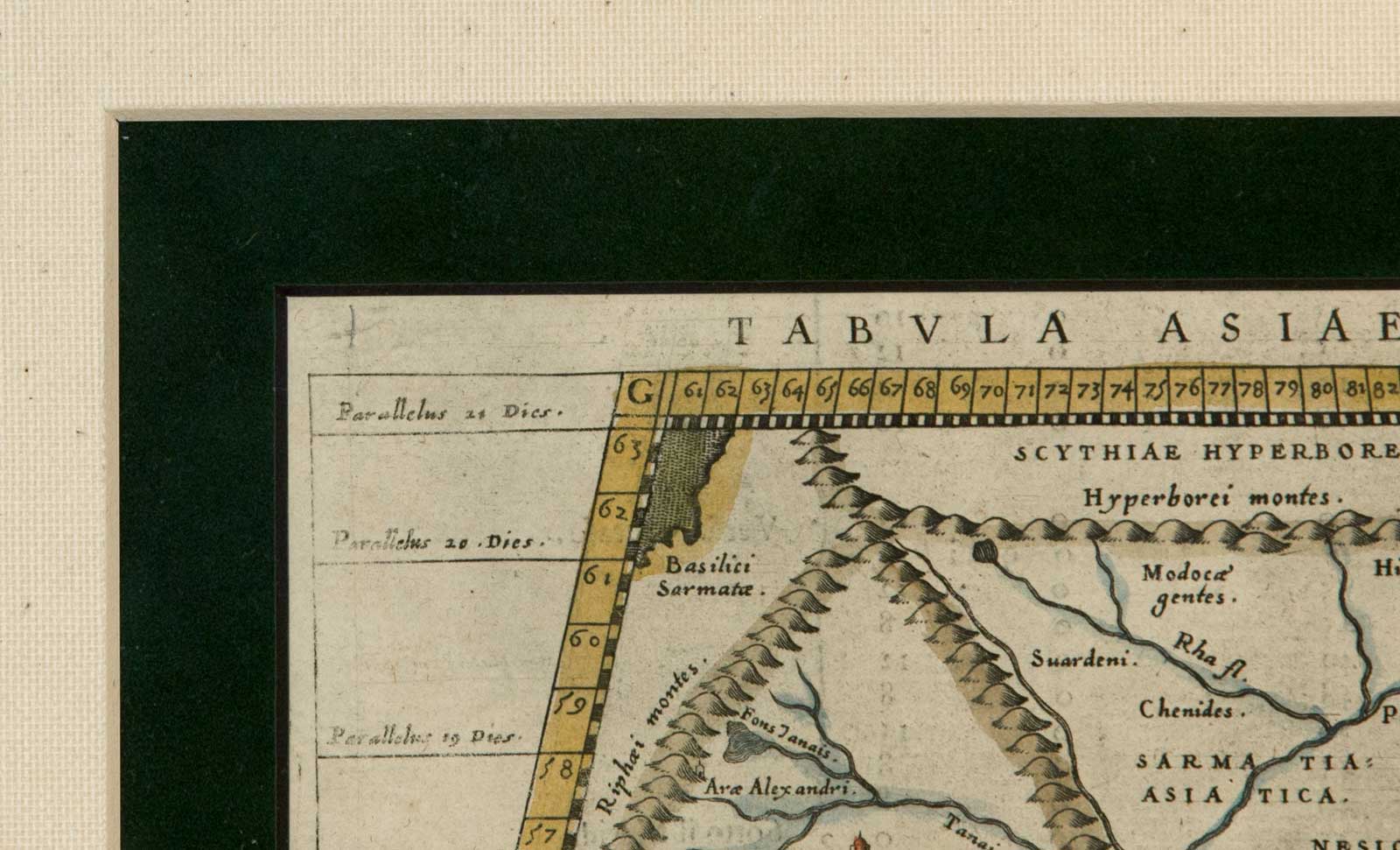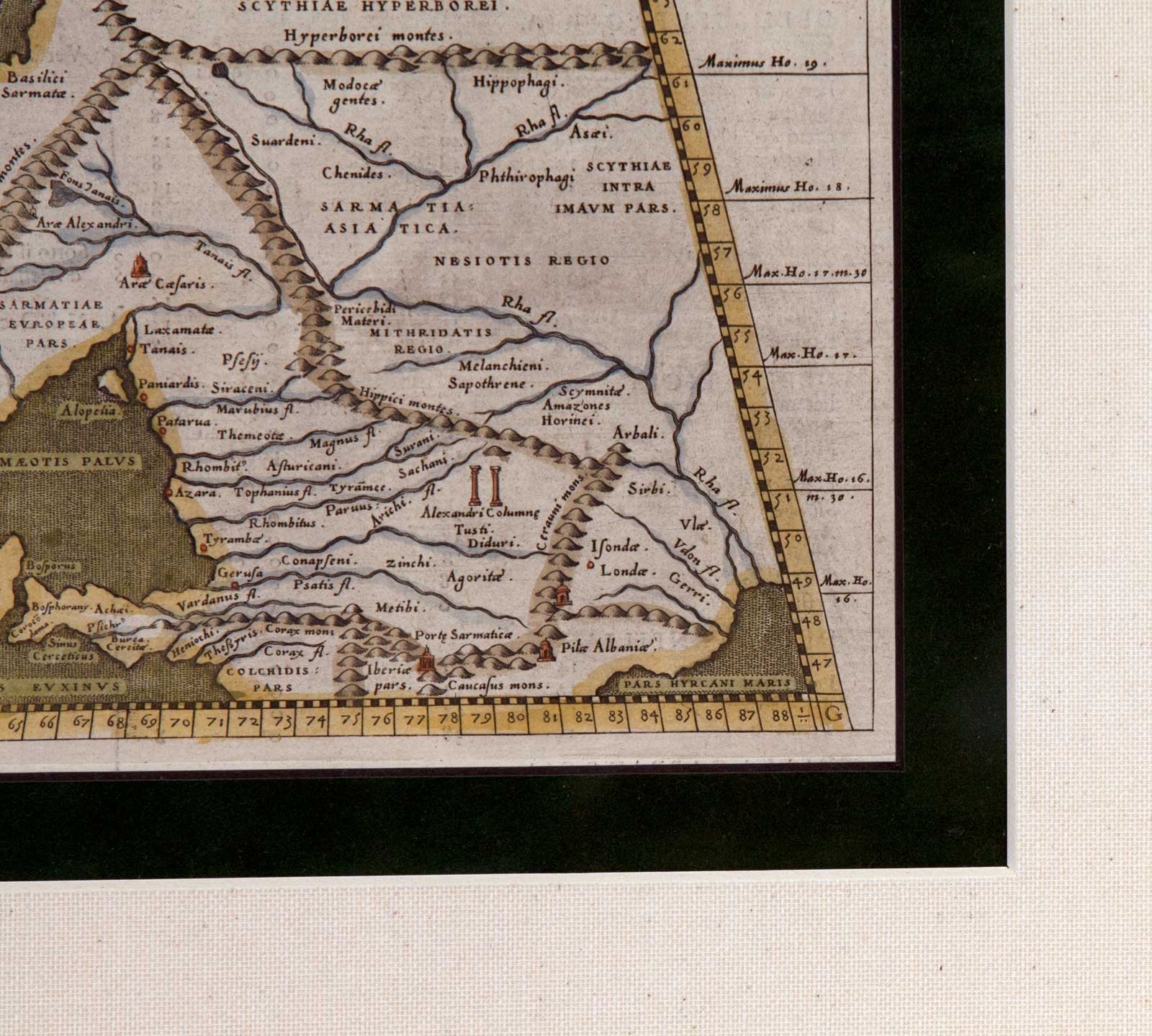 Предлагаем Вам эту изумительную по красоте исполнения и прекрасной коллекционной сохранности карту 1596 года издания в качестве оригинального и солидного подарка бизнесмену или учёному.