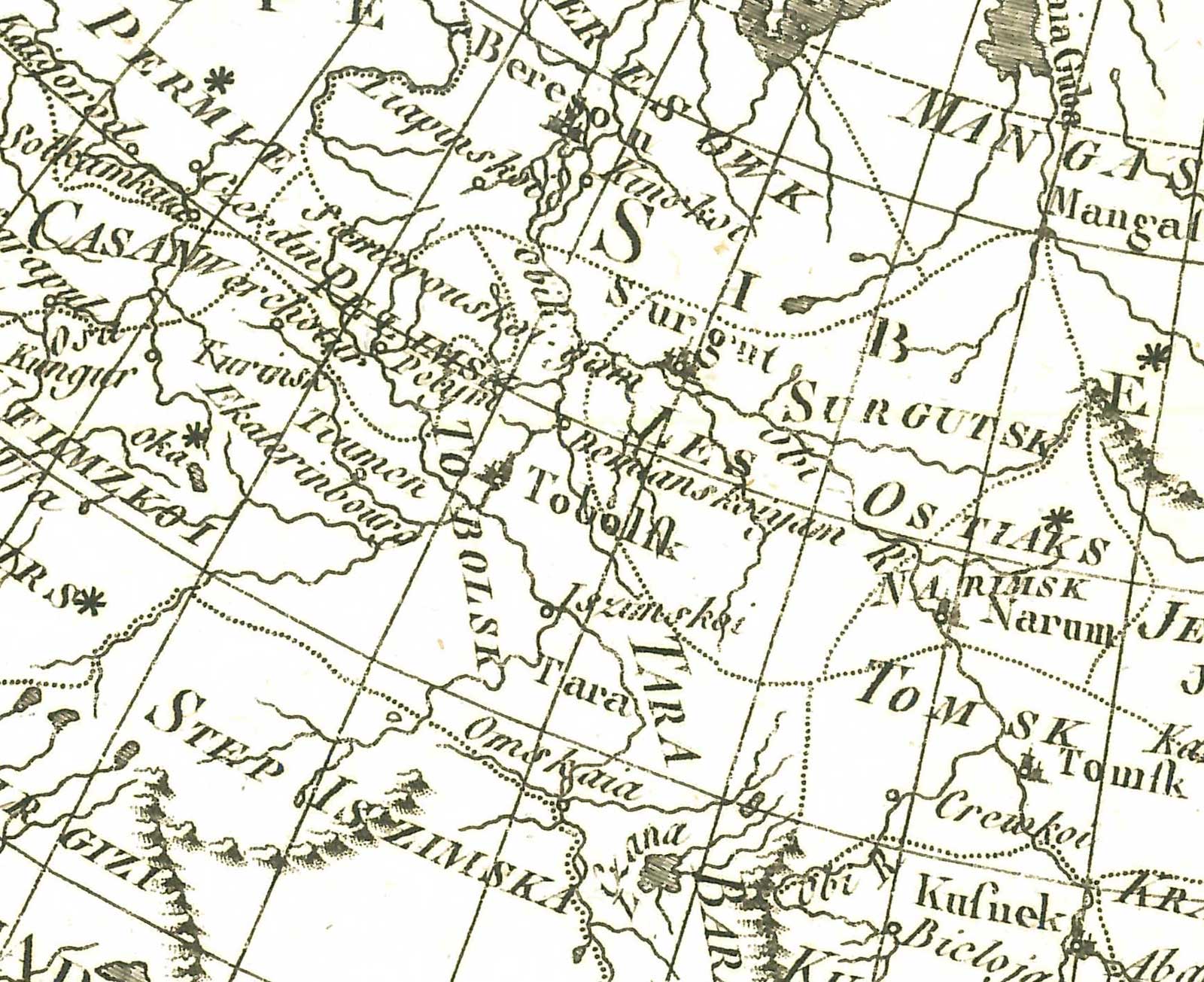 Карта обладает хорошей детализацией, отображает города, реки, административное деление губерний, а также зимовья и народности. Среди народов, населяющих Российскую империю, на карте легко находятся: башкиры, чукчи, ханты (ostiaks), тунгусы, каряки, самоеды (samoiedes).