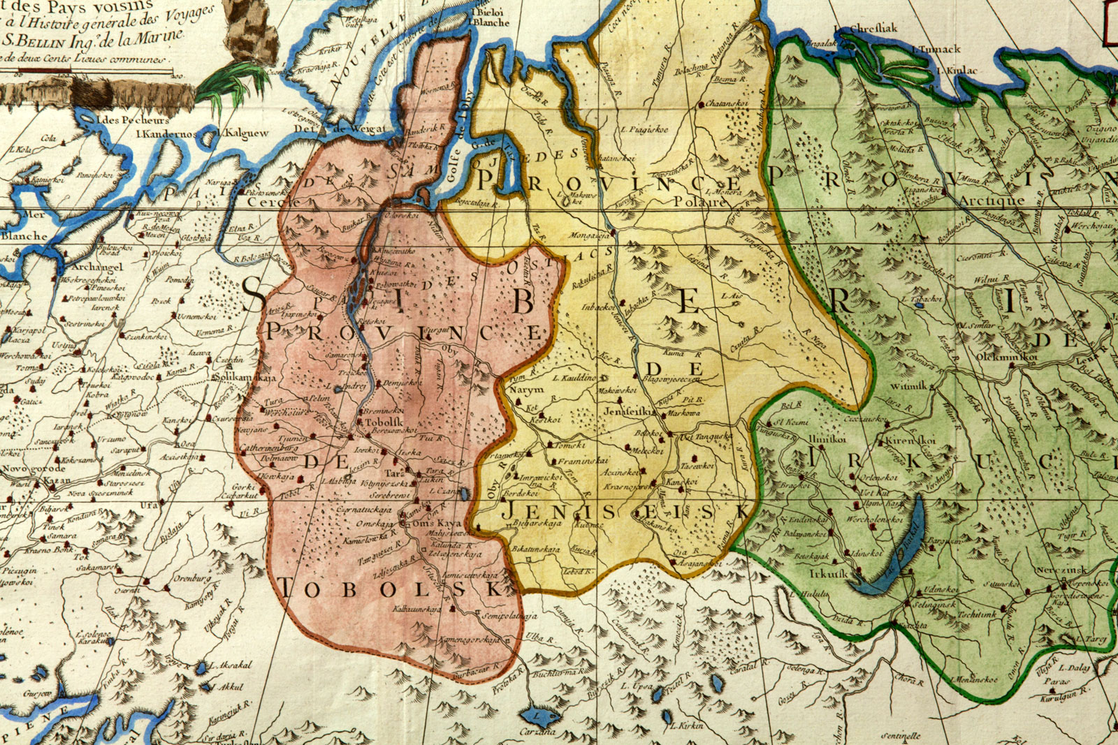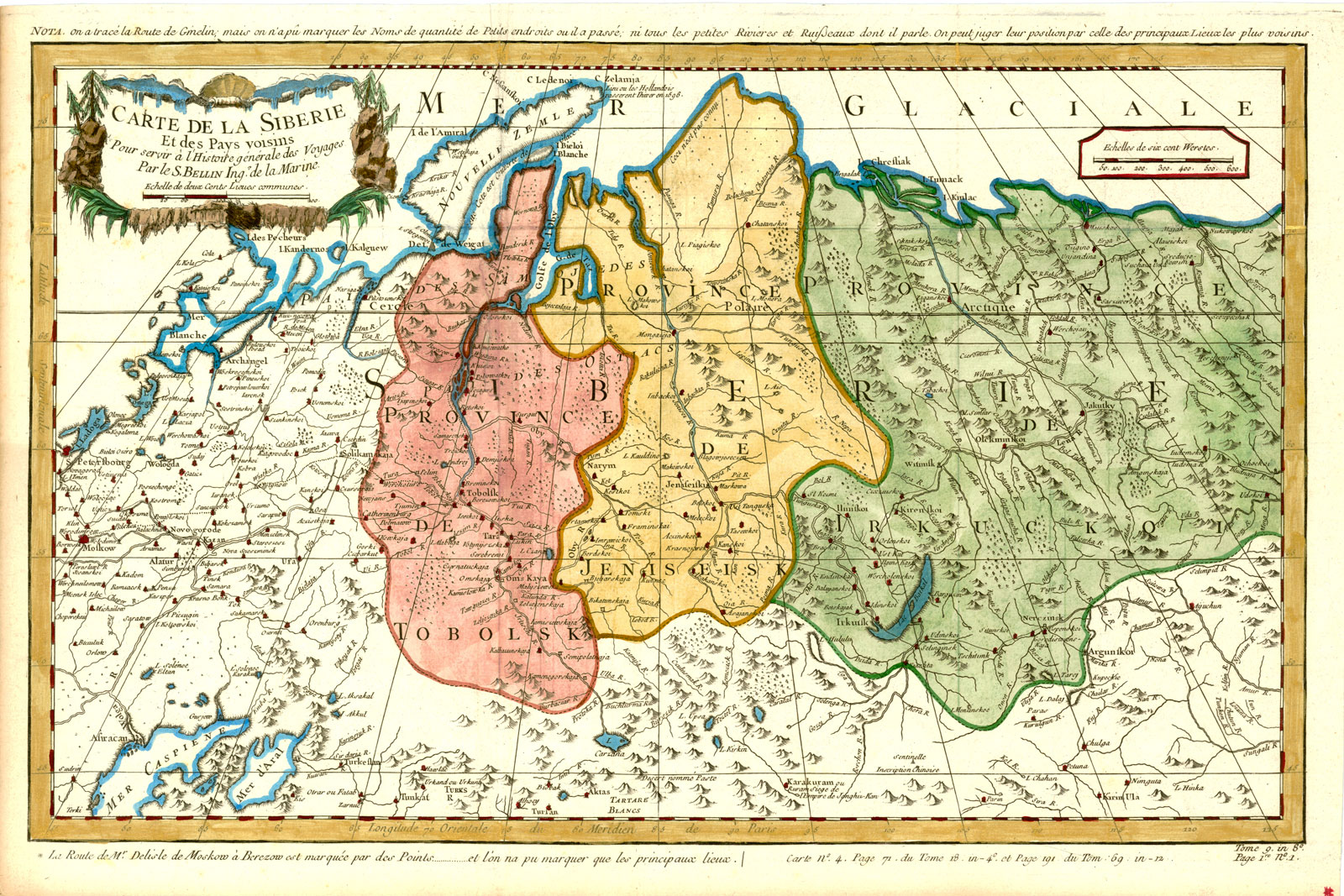 Оригинальное название: Carte de la Siberie et des Pays voisins Pour servir a l'Histoire generale des Voyages par le S. Bellin.