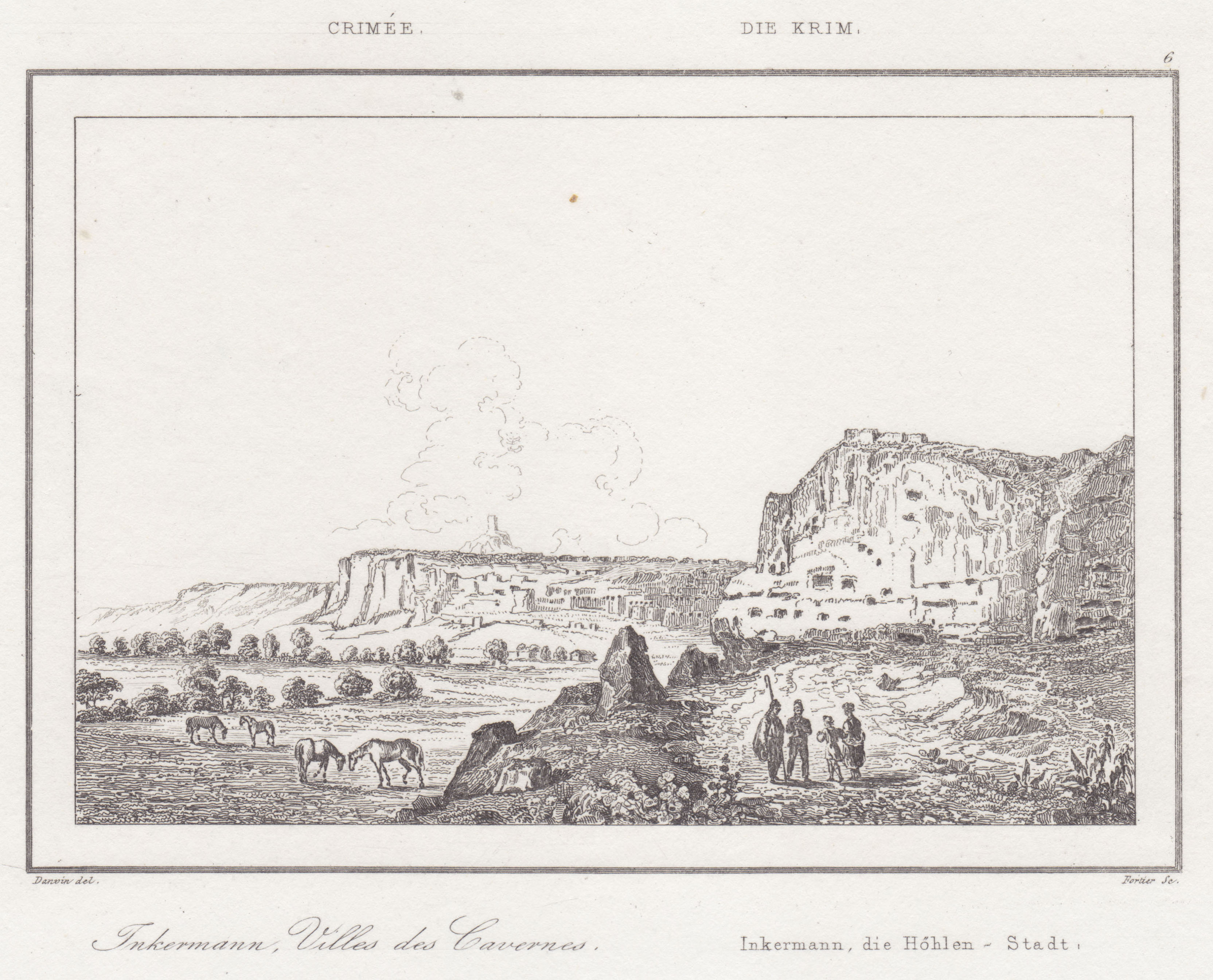4. Инкерман, пещерный город. Гравёр: Fortier. Художник: Victor Danvin (1802-1842).