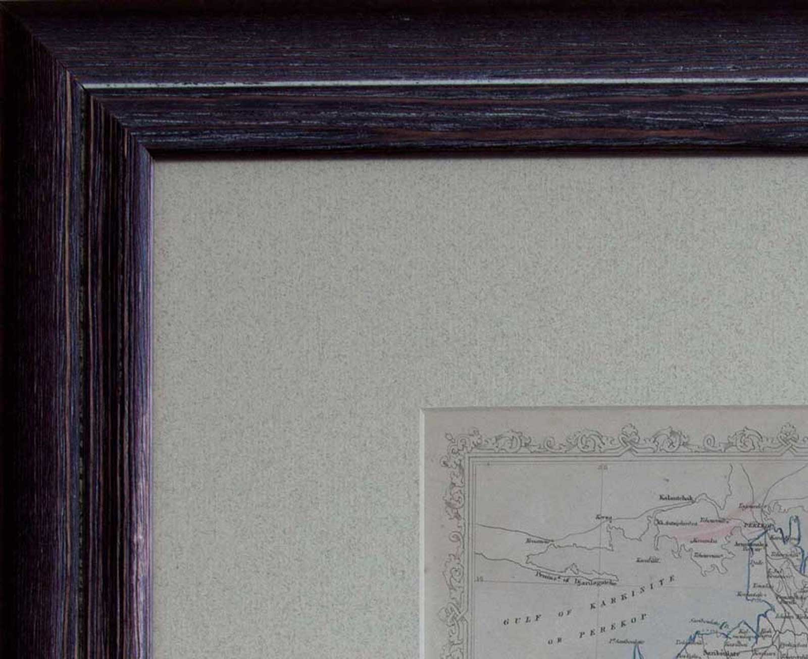 Карта оформлена в паспарту с легким цветовым оттенком, сочетающимся с основным тоном карты, обрамлена в деревянную раму, под стекло. Оборотная сторона рамы снабжена подвесом из проволоки с прозрачным пластиковым покрытием, приятным на ощупь.