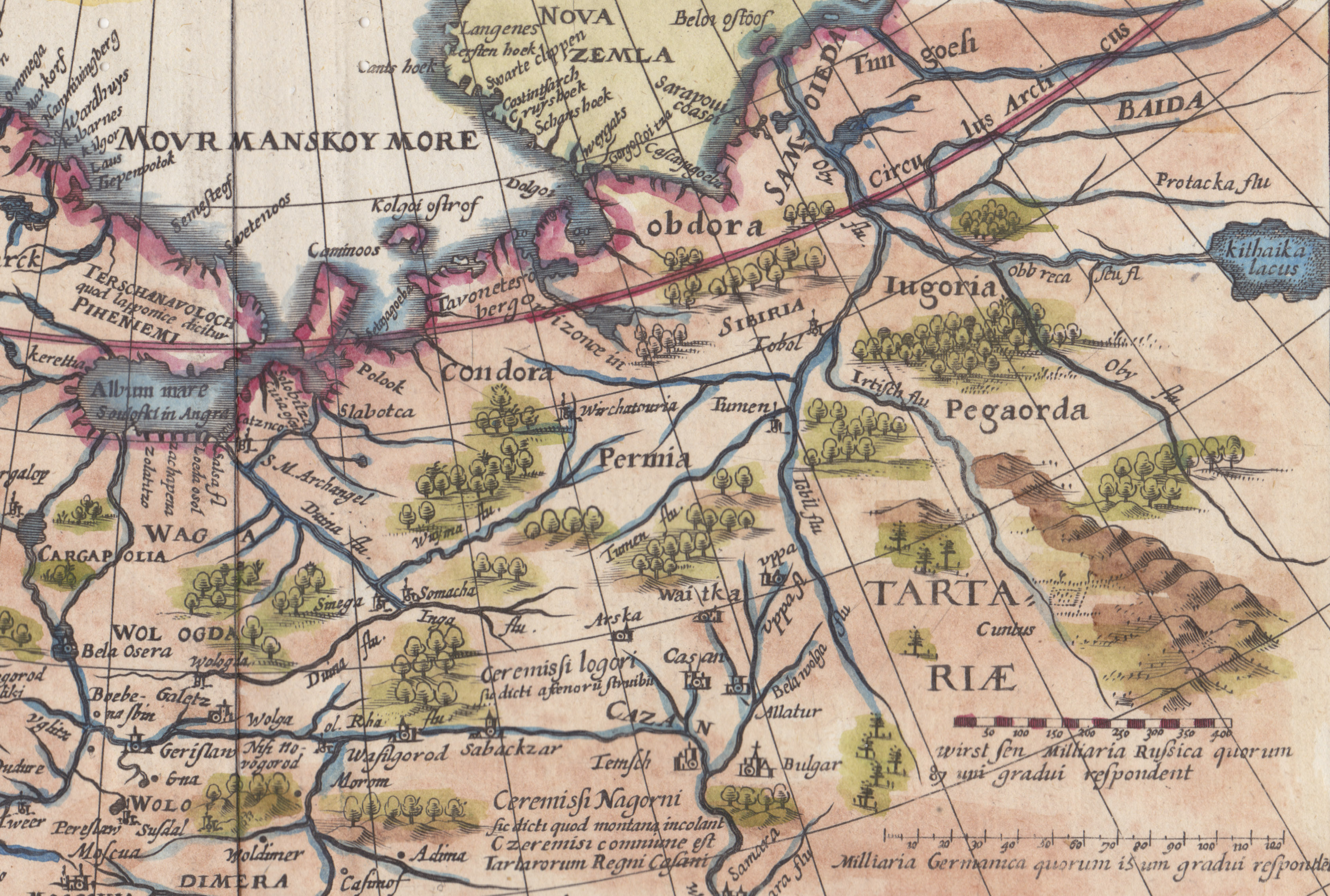 Она притягивает внимание, разглядывать её можно очень долго, сравнивая представления картографов и книгоиздателей XVII века с нашими представлениями об истории и географии того времени.