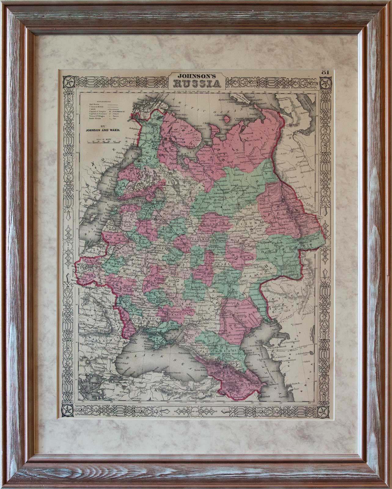 Не являясь очень редкой, карта, тем не менее, неизменно пользуется спросом у коллекционеров и очень хорошо известна в среде антикваров и букинистов. Узнаваемой ее делает знаменитая "джонсоновская рамка", которая сопровождает все карты этого издания. Практически без изменений данная карта публиковалась в Иллюстрированном семейном атласе с 1860 года до конца 70-х г.г. позапрошлого века.