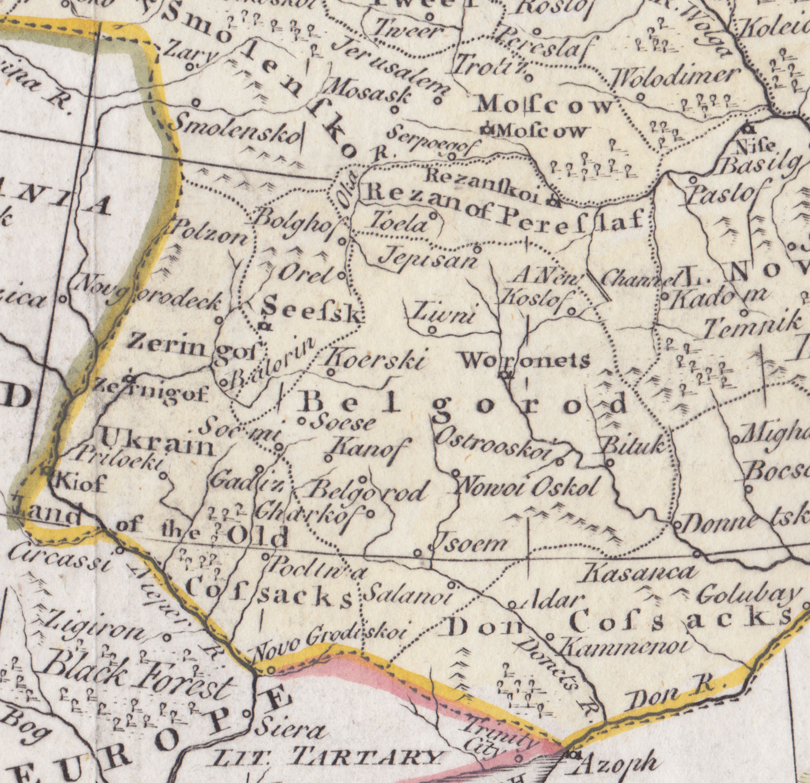 В этой связи интересна такая деталь: данный экземпляр карты «Россия или Московия в Европе» вышел в 1779 году, и на нём уже обозначен в границах России город Азов, оставшийся в Российской империи теперь навсегда и окончательно в ходе очередной русско-турецкой войны в 1769 году, а вот Керчь и крепость Ени-Кале, ставшие частью России на основании Карасубазарского трактата в 1772 году (спустя 3 года), не обозначены на карте. Между тем, даже Османская империя в 1774 году признала этот факт в Кючук-Кайнарджийском договоре.