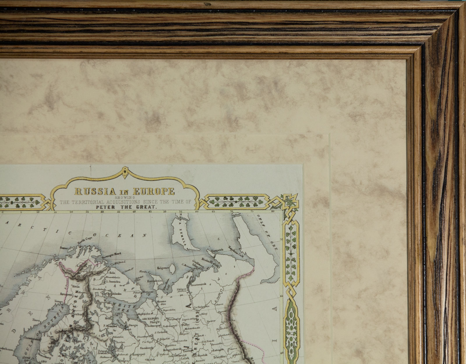Карта оформлена в двойное паспарту, для которого подобран картон консервационного качества с легким цветовым оттенком, сочетающимся с основным тоном карты.