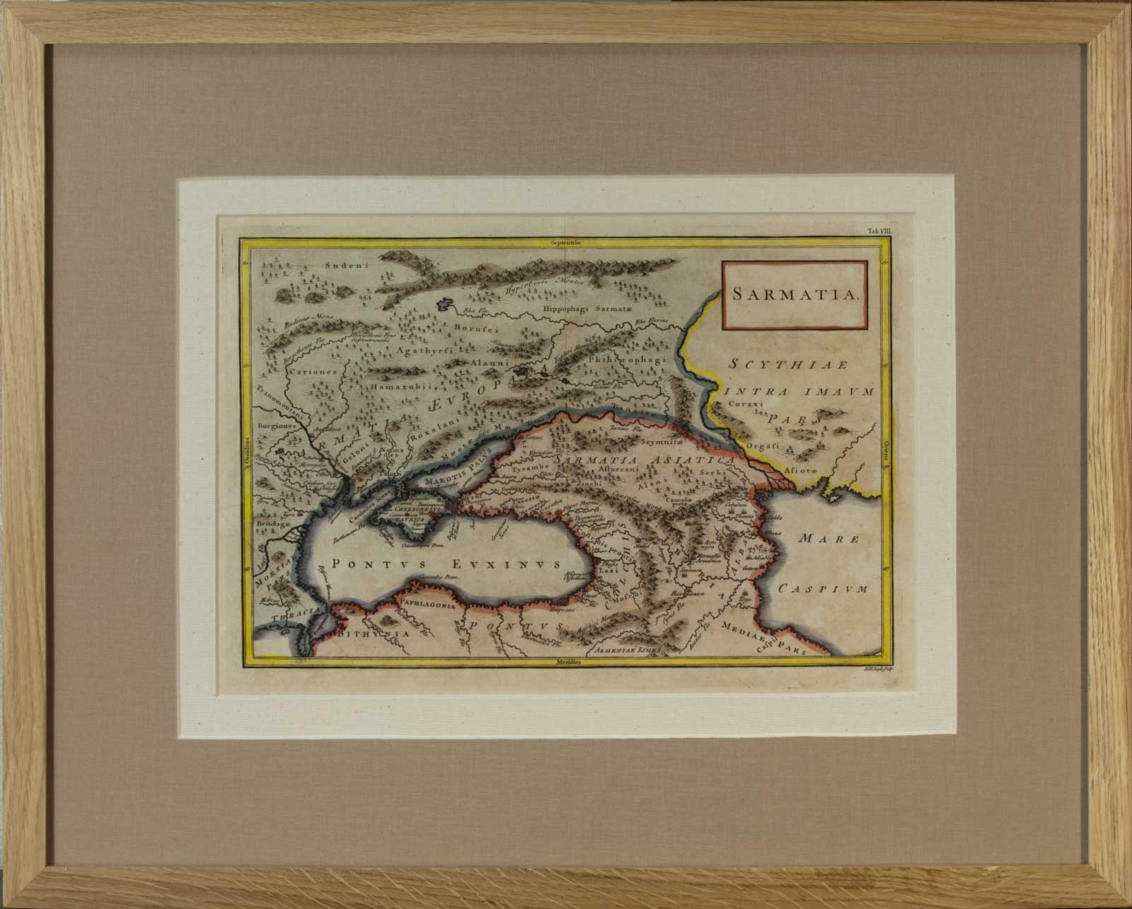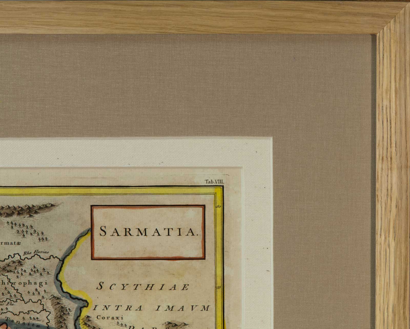 Красивейшая карта, на которой изображены южные и юго-западные земли нашей страны, а также территории, принадлежащие нашим ближайшим соседям. Карта первой половины XVIII века отражает не современную ей ситуацию, а более ранний период, когда не было еще Тартарии и Московского царства, но были легендарные Сарматия, Скифия, Колхида, Боспорское царство. Первая публикация карты Sarmatia Кристофа Целлариуса состоялась в 1686 году.