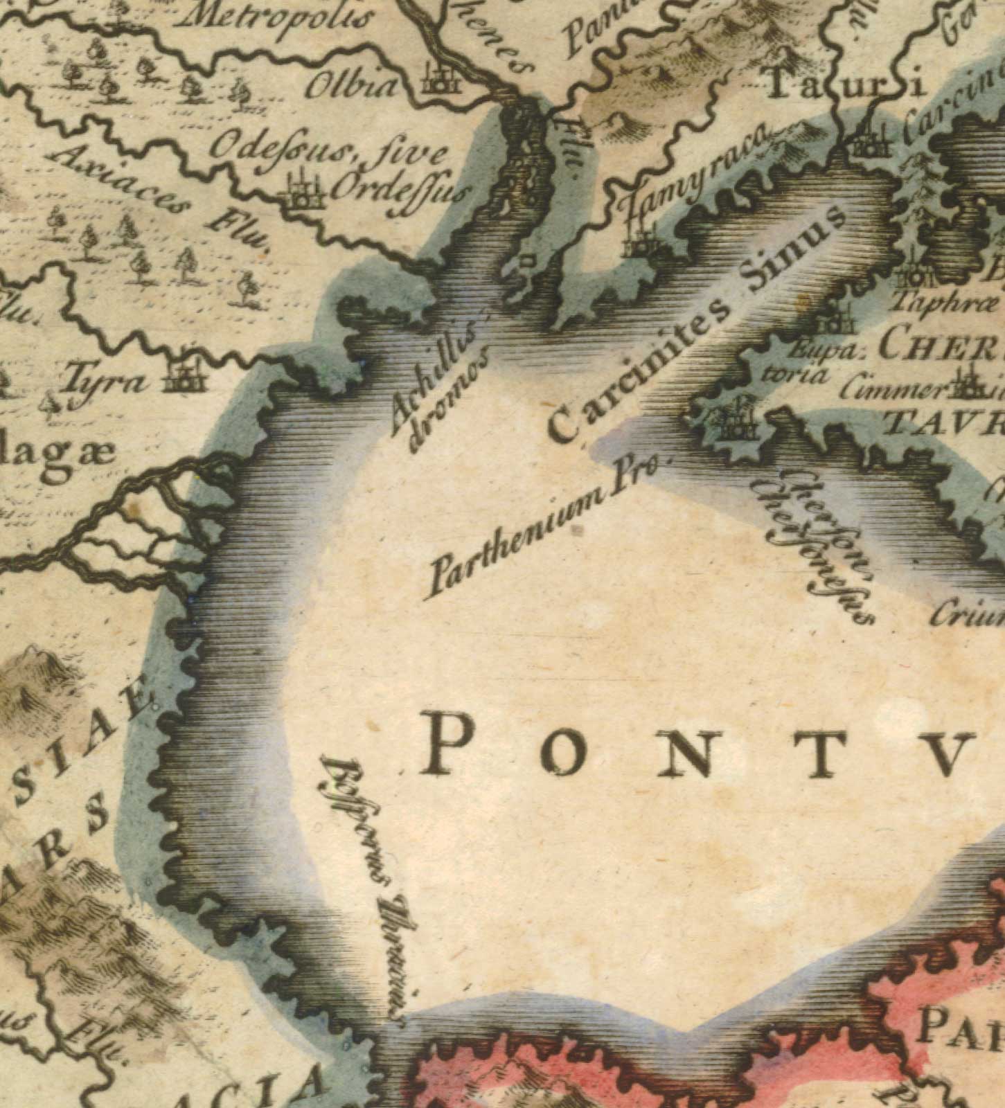 Между Tyra и Metropolis на карте обозначен город Odessus, sive Ordessus (Одесса или Ордесса). Глядя на современные карты, похоже, что Одесса примерно в этом месте и расположена. Однако, известная нам Одесса получила это название только в 1795 году по имени древнегреческого города-колонии Odessus. А этот город-колонию археологи нашли близ современной Варны в Болгарии. То есть совсем в другом месте.