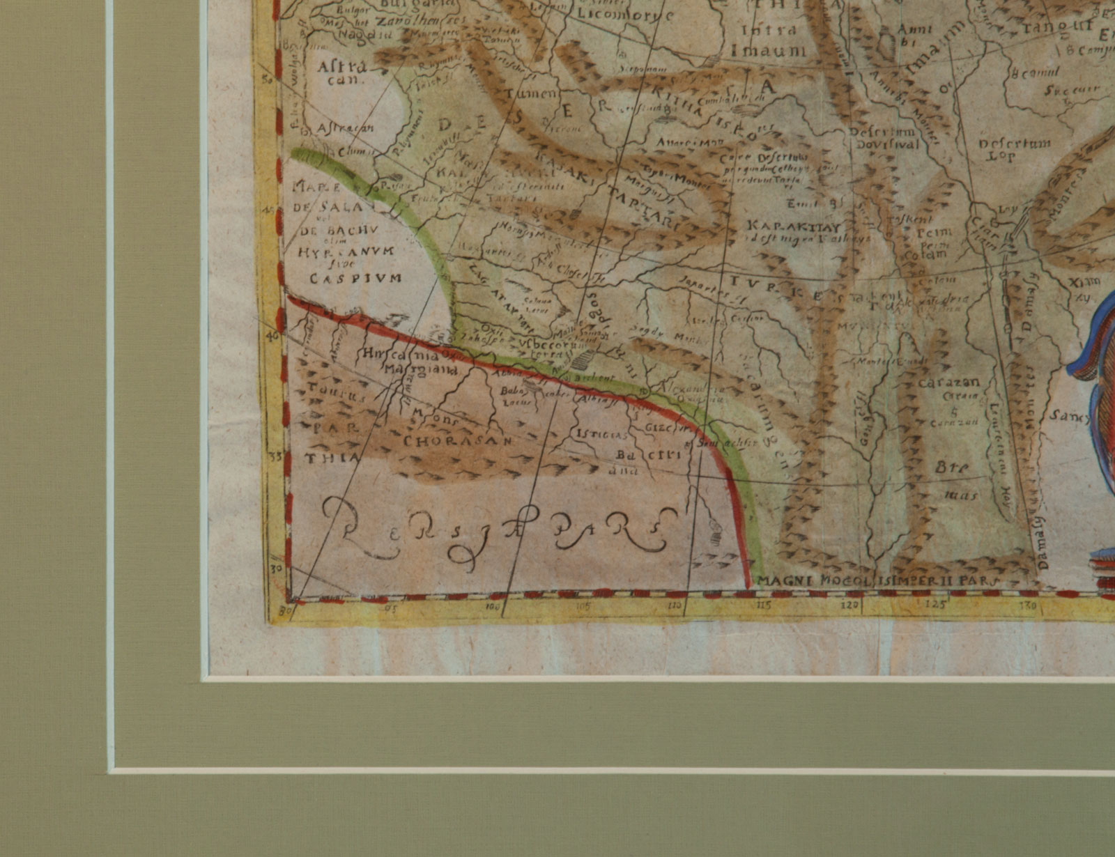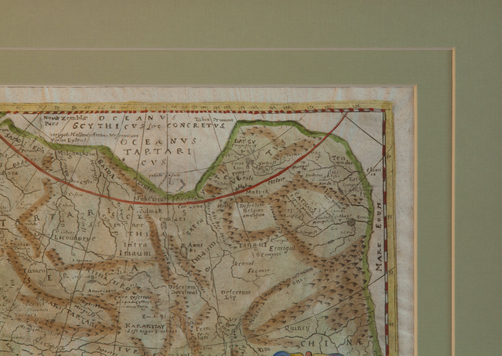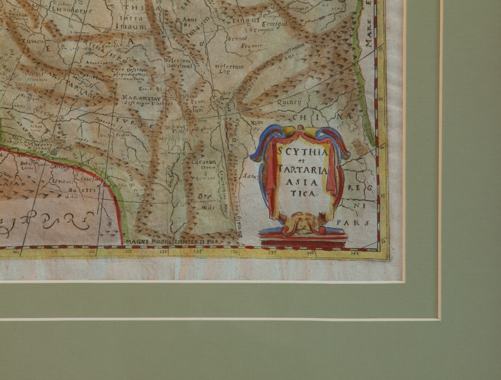 В правом нижнем углу над картушем картограф отобразил Великую Китайскую стену, обрамляющую Китай.