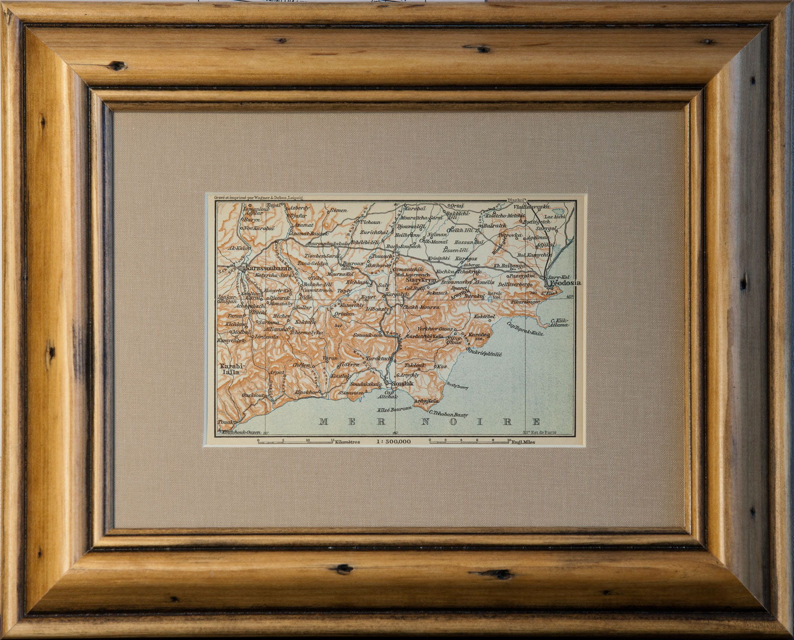 Карта кабинетного формата. Внешний размер рамы 32 см х 26 см.