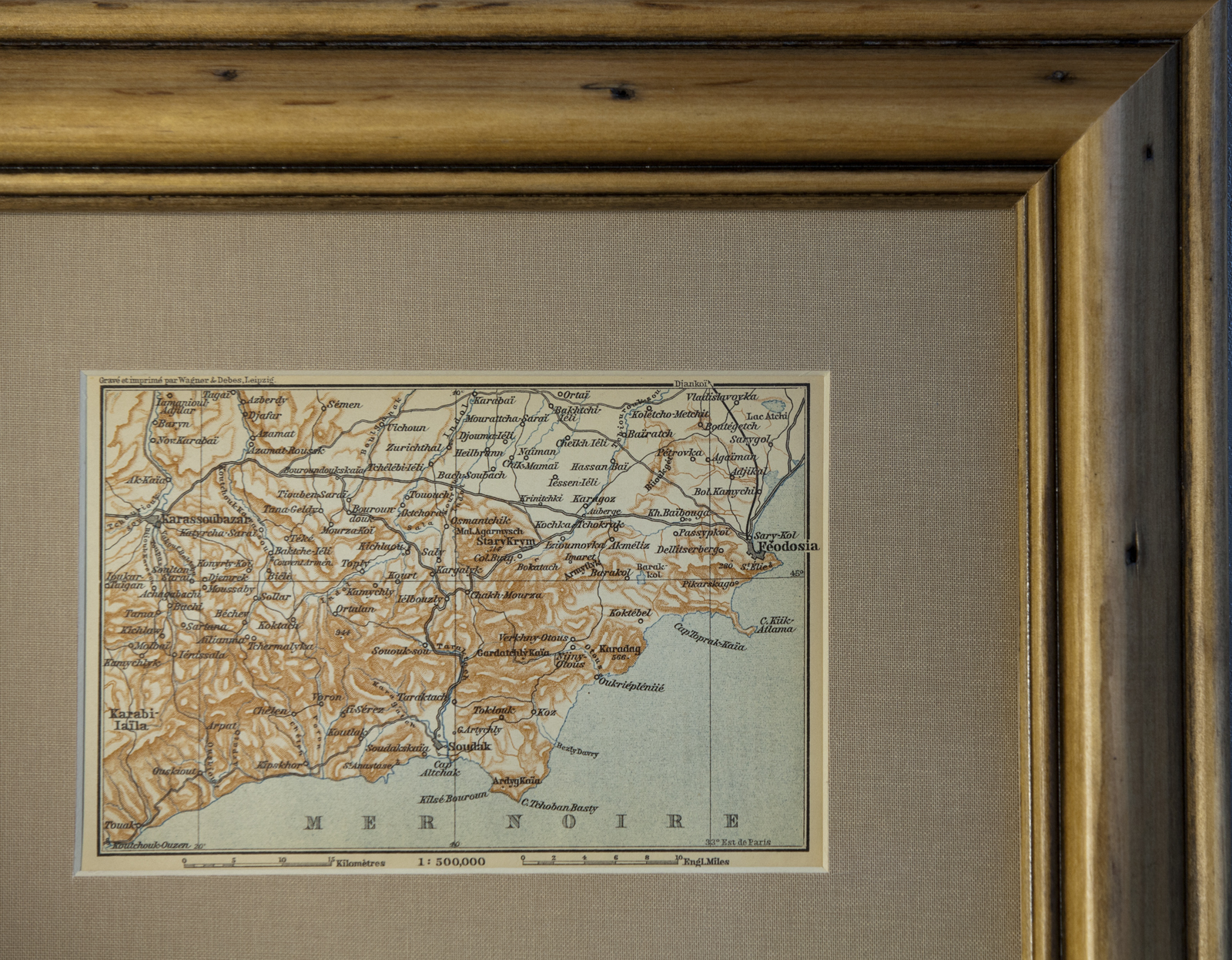 Старый Крым – город, имевший некогда огромное значение в силу располагавшейся в нём резиденции наместника хана Золотой Орды; город, давший название всему полуострову, помещён в центр карты. Старый Крым интересен и уникален не только тем, что возраст первых поселений на его территории определяется лишь приблизительно, по раскопкам, относимым к периоду неолита, но и тем, что он сохранил своё название, невзирая на переименование. Название на греческий манер «Левкополь», данное при Екатерине II, не прижилось, и город, называемый Эски-Керим или Солхат, получил русское звучание исконного названия – Старый Крым.