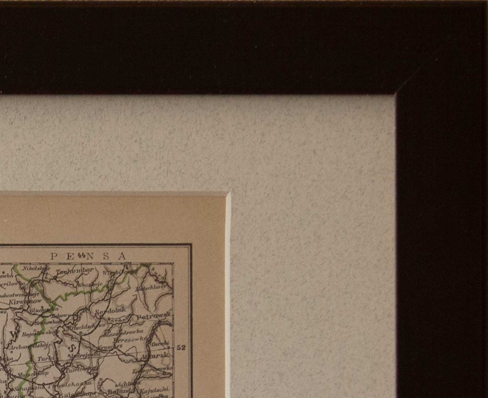Оформлена в резервационное паспарту. Паспарту для этой карты изготовлено из картона высочайшего качества, имеющего специальное назначение - консервационное. Картон паспарту состоит из двух слоев, проложенных хлопковыми волокнами, лицевая сторона - бескислотная.